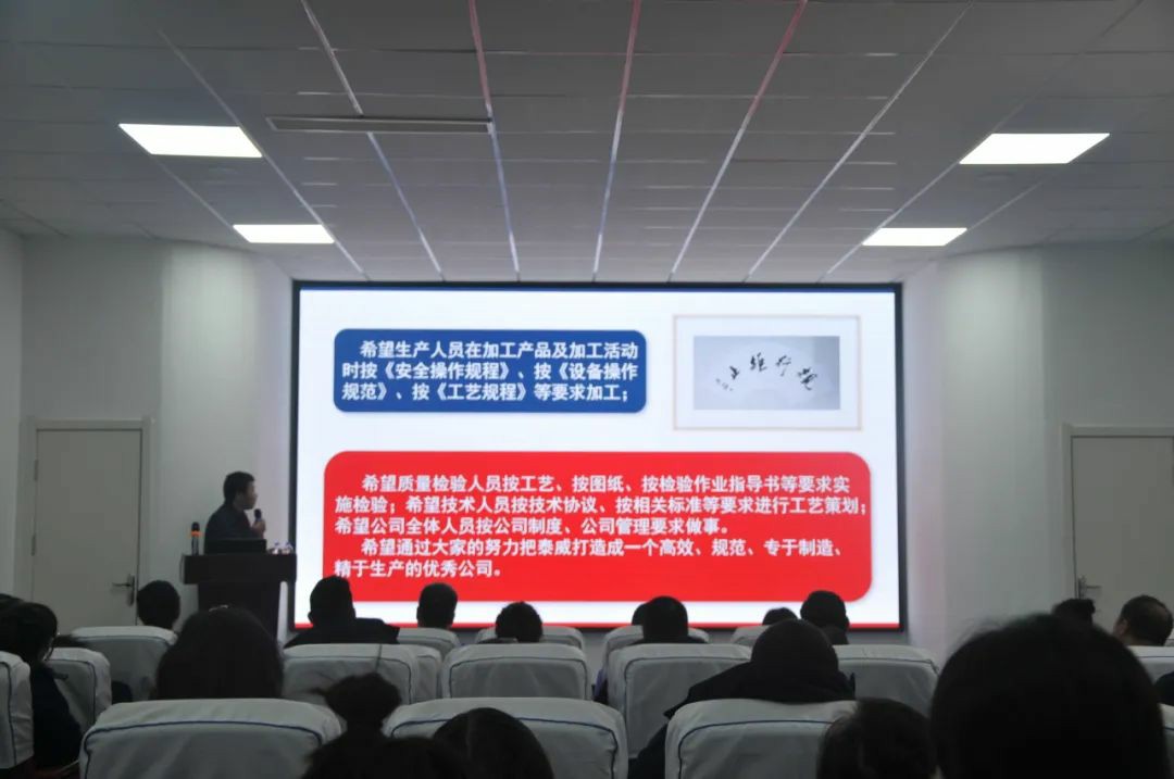 質(zhì)量部部長從“年終工作總結(jié)”“質(zhì)量部統(tǒng)計(jì)分析”“明年工作計(jì)劃”三個(gè)模塊對質(zhì)量部的全年工作進(jìn)行總結(jié),對團(tuán)隊(duì)工作、計(jì)量管理、體系審核、外協(xié)供應(yīng)商管理等方面的工作進(jìn)行了簡要概括。針對產(chǎn)品質(zhì)量數(shù)據(jù),為2022年的產(chǎn)品質(zhì)量控制提出了建設(shè)性建議。借用“將月就日”和“止距行規(guī)”兩詞,與大家共勉,希望各部門按照相關(guān)文件和流程要求嚴(yán)格執(zhí)行各項(xiàng)工作,通過努力把泰威打造成一個(gè)高效、規(guī)范、專注制造、精于生產(chǎn)的優(yōu)秀公司。