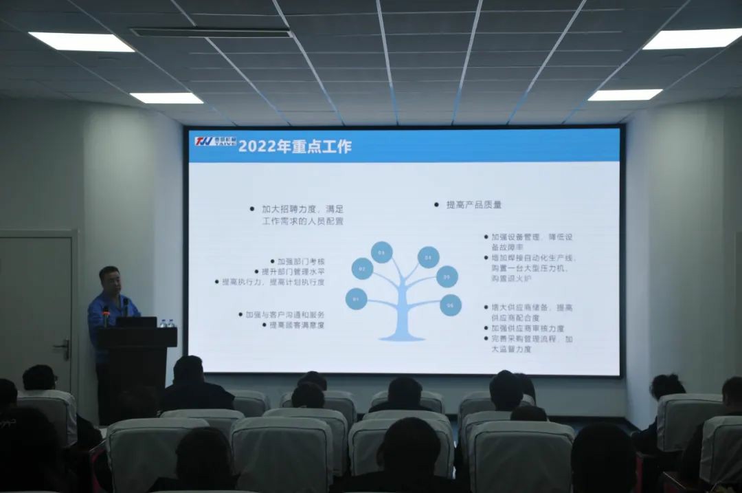 總經(jīng)理對2021年公司在人員配置、市場開拓、內(nèi)部管理、資源配置、人才培養(yǎng)、辦公環(huán)境、福利設(shè)施的改善、企業(yè)文化的加強(qiáng)等方面取得的主要業(yè)績進(jìn)行了肯定,在肯定的同時(shí)也指出了在部門溝通、日常管理、人員配置、產(chǎn)品質(zhì)量、設(shè)備管理、供應(yīng)商管理等方面存在的問題,針對問題提出了相應(yīng)的建議和要求,部署了2022年的工作任務(wù)和工作重點(diǎn),指出2022年要加快落實(shí)系統(tǒng)的管理體系,加大管理力度,強(qiáng)化各部門職能管理,明確各崗位職責(zé),切實(shí)做到工作有計(jì)劃、方案有分析、執(zhí)行有標(biāo)準(zhǔn)、結(jié)果有總結(jié)??偨?jīng)理相信在大家的共同努力下,2022年的泰威定能節(jié)節(jié)攀升,不負(fù)期待。
